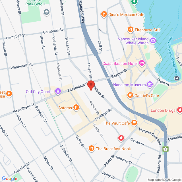 Located on the corner of Wallace Street and the intersection of Fitzwilliam and Bastion.